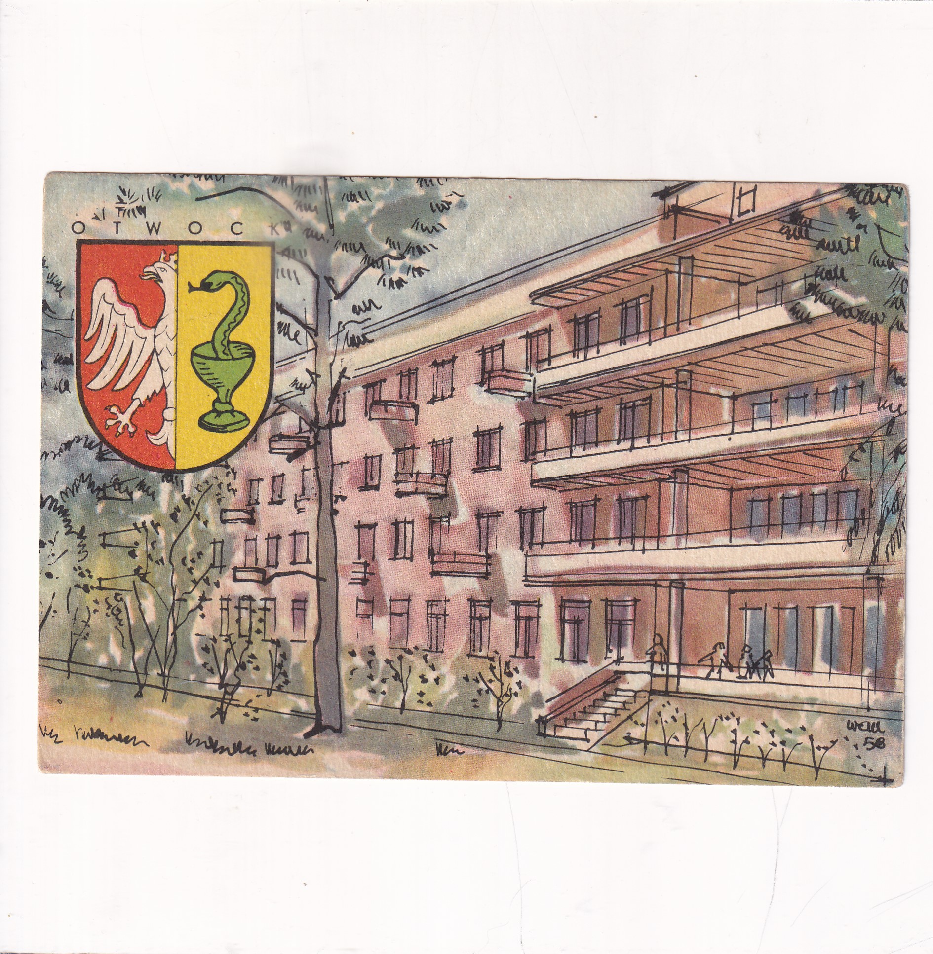AKWARELA ABM.WOCHNA OTWOCK HERB POCZTÓWKA A13438
