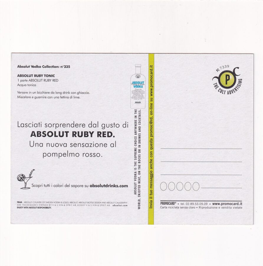 ALKOHOLE ABSOLUT WÓDKA RELEASE POCZTÓWKA A87809