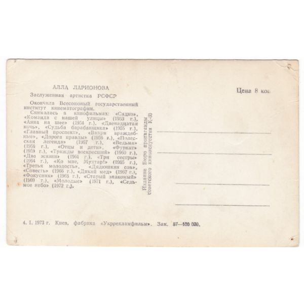 AŁŁA ŁARIONOWA AKTORKA POCZTÓWKA A44988
