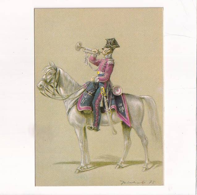 ANDRZEJ JEZIORKOWSKI TRĘBACZ W UBIORZE MARSZOWYM 1807-10 PUŁK LEKKOKONNY POCZTÓWKA GRAF-1706