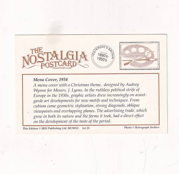 Okładka menu z motywem świątecznym zaprojektowana prze A.Wynne dla J.Lyonsa.