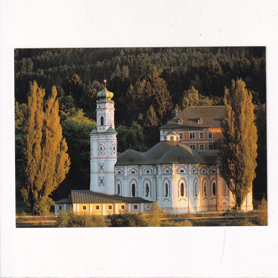 Pocztówka z Austrii…Karlskirche to kościół rzymskokatolicki z patronem św. Charles Borromeo na zachód od Volders w Tyrolu . Uchodzi za jedną z najpiękniejszych budowli rokokowych w Tyrolu. Kiedyś nazywano go Brugg’nkirche ze względu na położenie na moście Volder Inn . Obok kościoła znajduje się związany z nim klasztor Serwitów . Kościół i klasztor objęte są ochroną zabytków.- za wikipedią