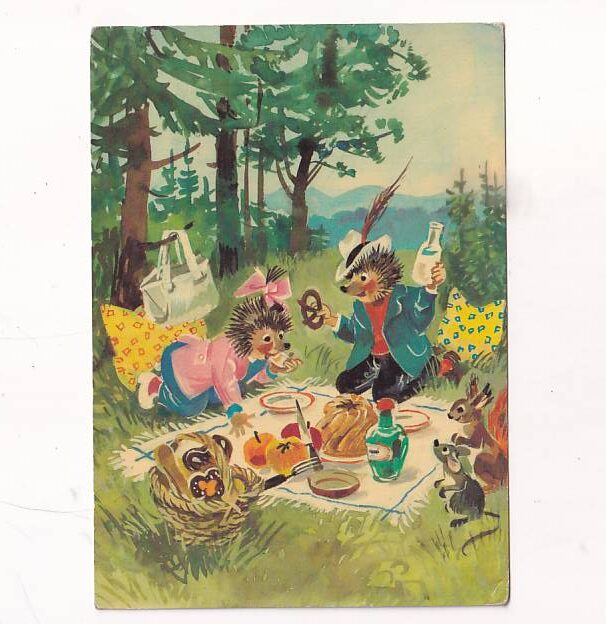 Przedstawiana na starych pocztówkach. Był to sympatyczny jeż, którego przygody często ukazywały go w różnych rolach.