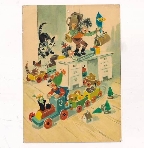 Przedstawiana na starych pocztówkach. Był to sympatyczny jeż, którego przygody często ukazywały go w różnych rolach.