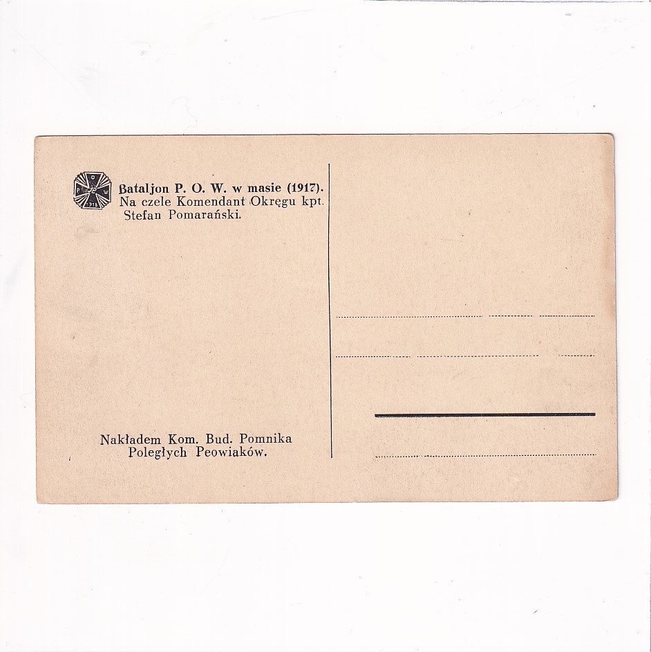 BATALJON P.O.W. W MASIE 1917r. NA CZELE KOMENDANT OKRĘGU KPT. ST.POMARAŃSKI POCZTÓWKA A17705
