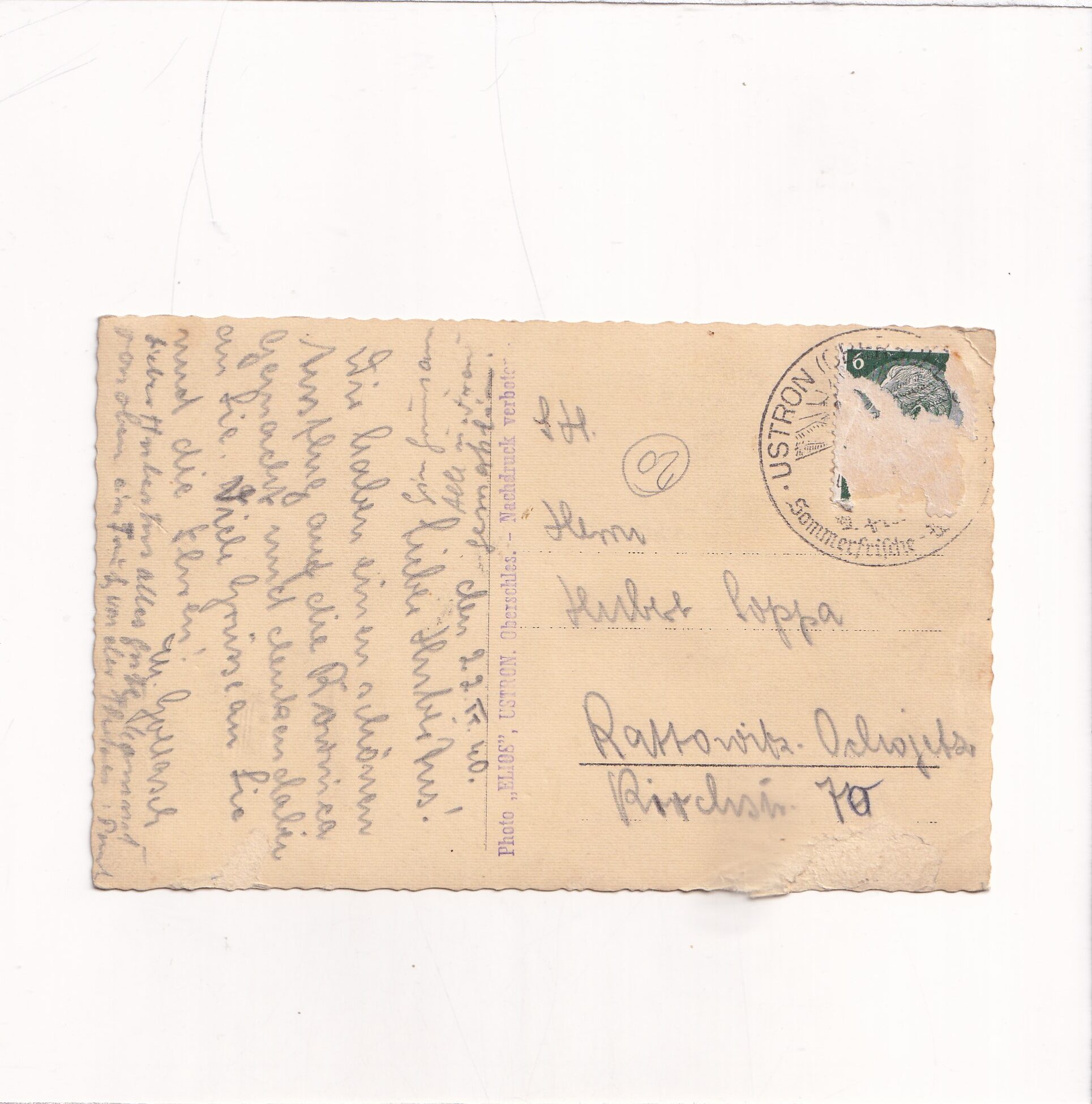 Wydano: „ELIOS” Ustroń. WYsłano w 1940r