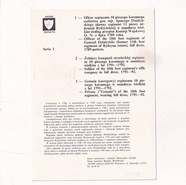 BOHDAN WRÓBLEWSKI MUNDURY WOJSKA KORONNEGO PRZECZYPOSPOLITEJ DOBY SEJMU WIELKIEGO 1788-1792 POCZTÓWKA GRAF-1992