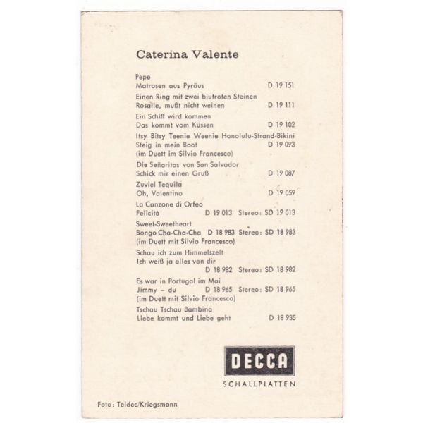 ilość CATERINA VALENTE AKTORKA POCZTÓWKA A45001
