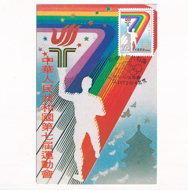 ilustracja przedstawia pamiątkową kartę pocztową z 7. Narodowych Igrzysk Chińskiej Republiki Ludowej.