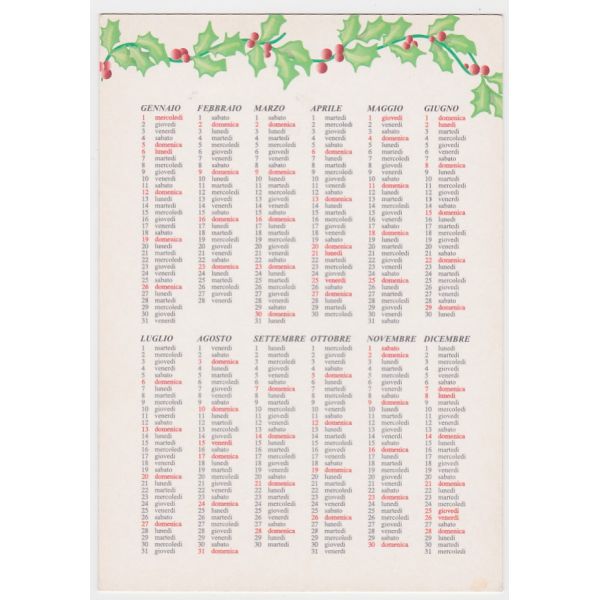 Pocztówka reklamowa z Włoch – z tyłu kalendarz