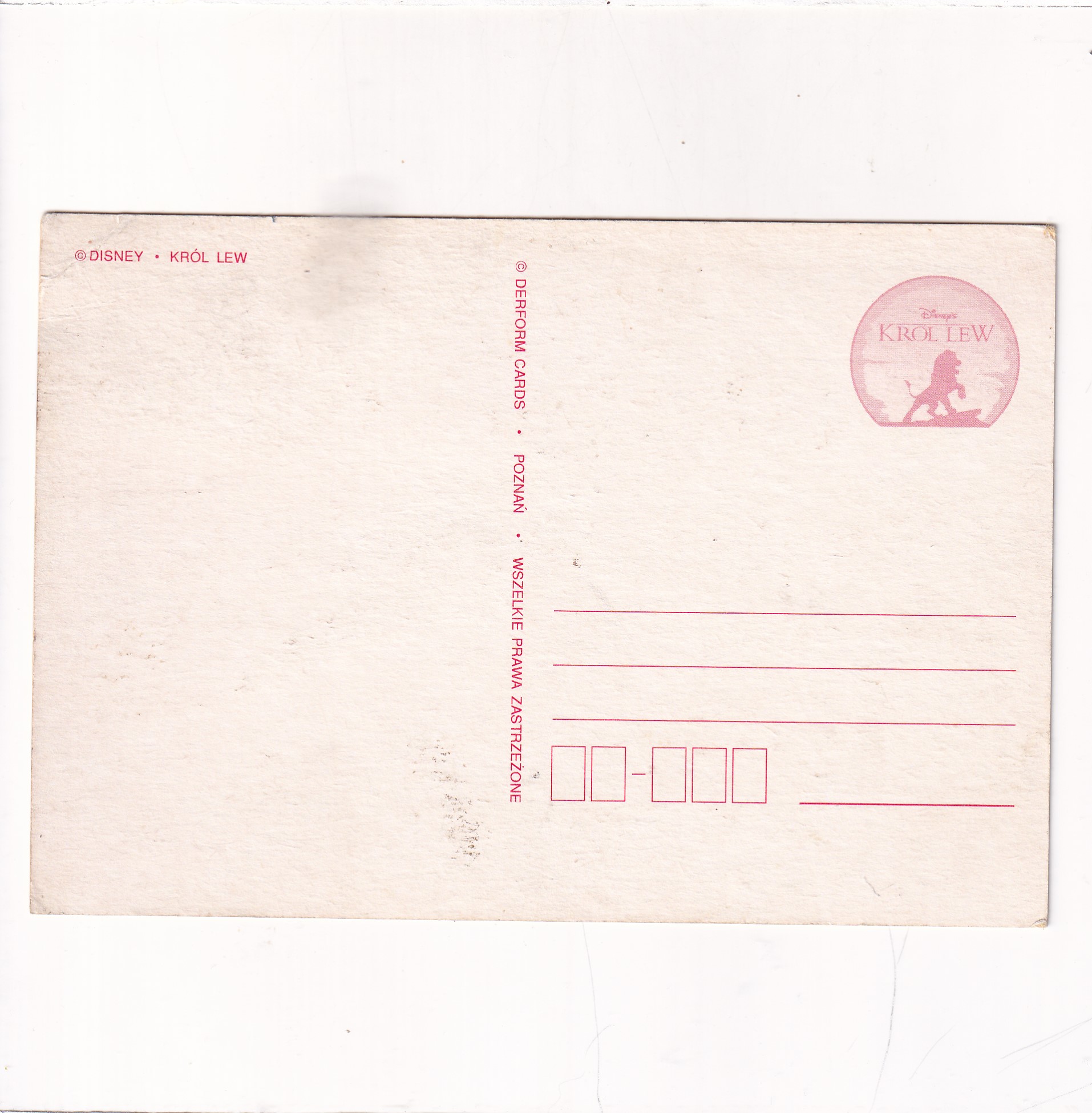 DISNEY „KRÓL LEW” POCZTÓWKA A14452