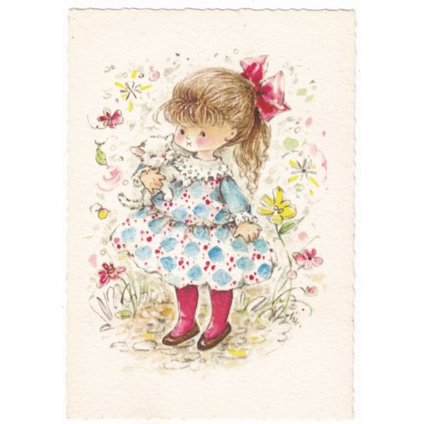 DZIEWCZYNKA I KOT POCZTÓWKA ARTYSTYCZNA A61426