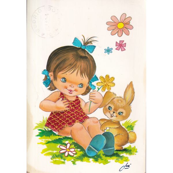 DZIEWCZYNKA KRÓLIK POCZTÓWKA Z HAFTEM A77239