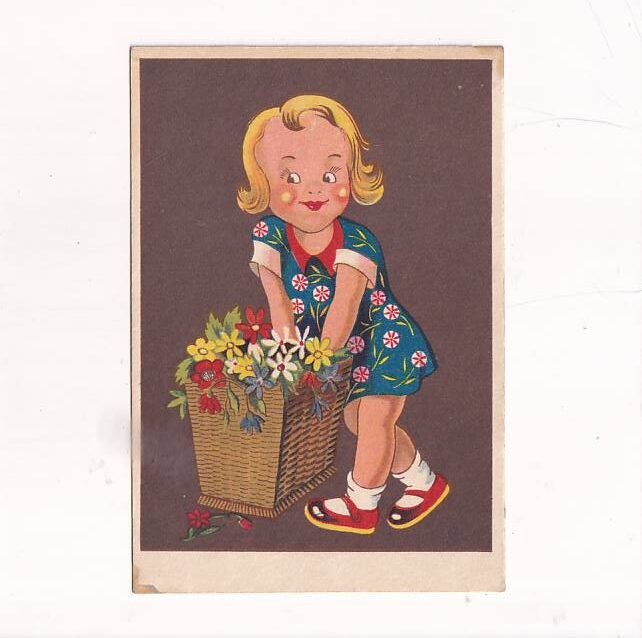 / DZIEWCZYNKA KWIATY POCZTÓWKA A23683