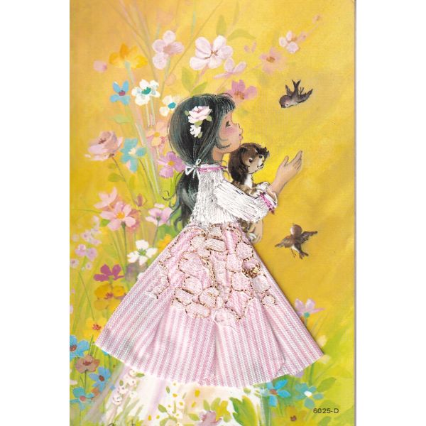 / DZIEWCZYNKA ZWIERZĘTA POCZTÓWKA Z HAFTEM A77238