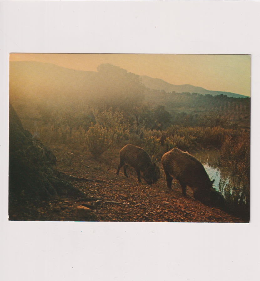 / DZIKIE ZWIERZĘTA DZIKI W PORANNEJ MGLE POCZTÓWKA A93062