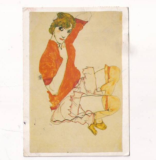 EGON SCHIELE KOBIETA SIEDZĄCA W NEGLIŻU 1913 POCZTÓWKA A37332