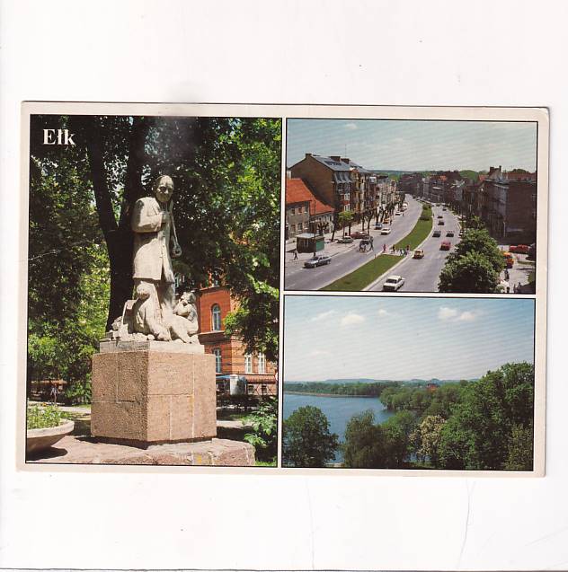 EŁK POMNIK M.KAJKI JEZIORO ULICA WOJ.POLSKIEGO SAMOCHODY WIDOKÓWKA A29934