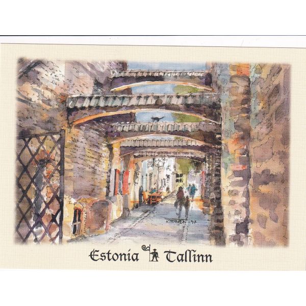 ESTONIA TALLINN PASAŻ ŚWIĘTEJ KATARZYNY WIDOKÓWKA AKWARELA CZ-TALLINN-06