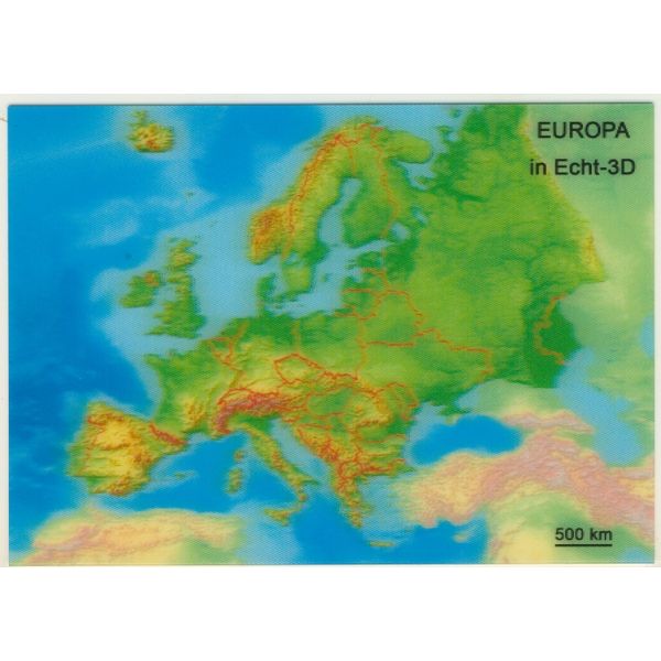 EUROPA MAPKA POCZTÓWKA 3D TRÓJWYMIAROWA 3D289