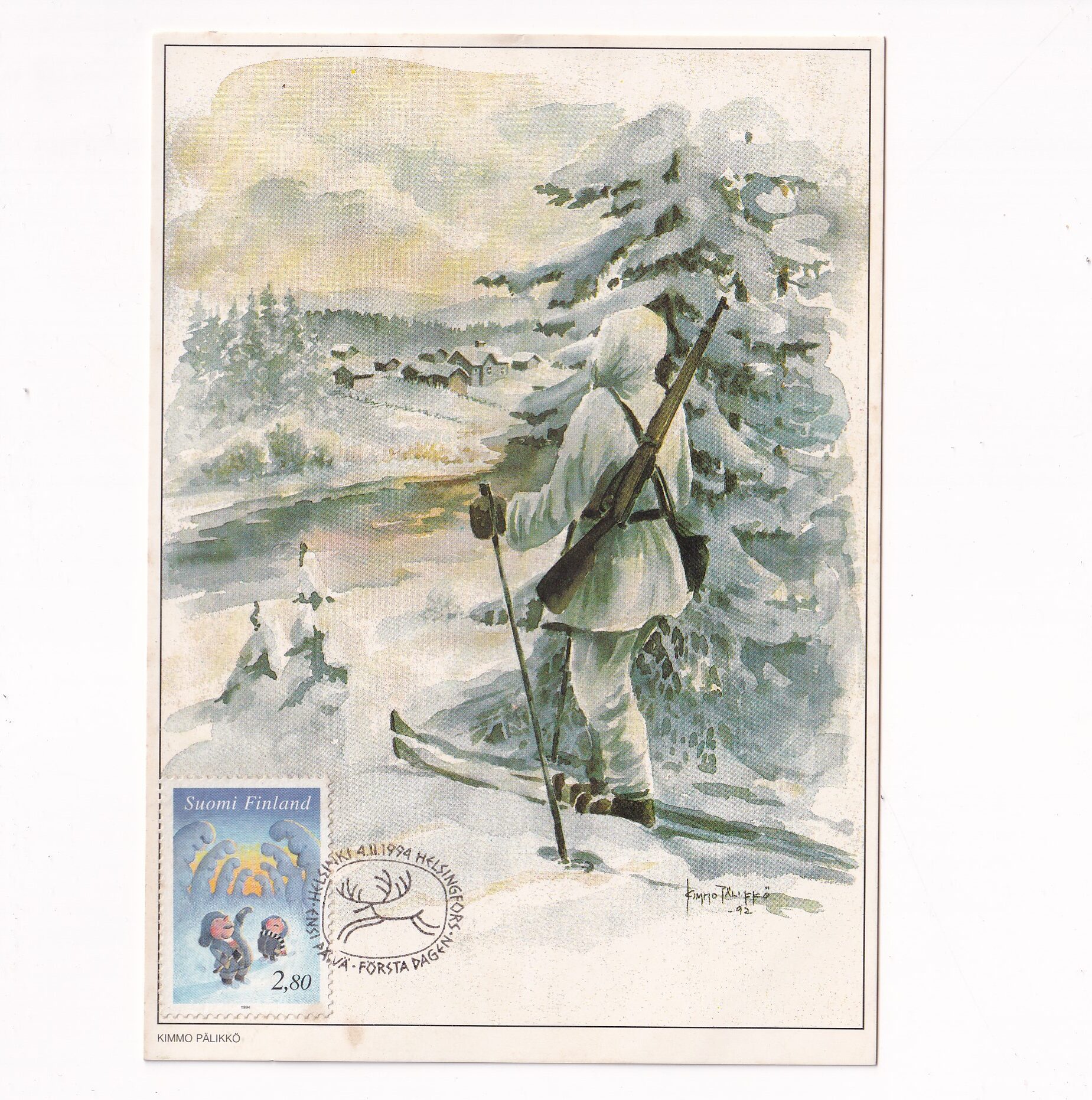 FINLANDIA ZIMA ŻOŁNIERZ AKWARELA POCZTÓWKA A6572