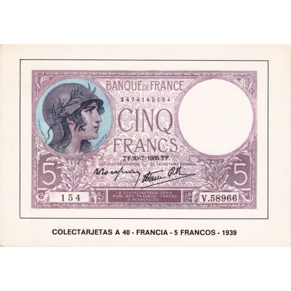 FRANCJA 5 FRANKÓW BANKNOT POCZTÓWKA A74094