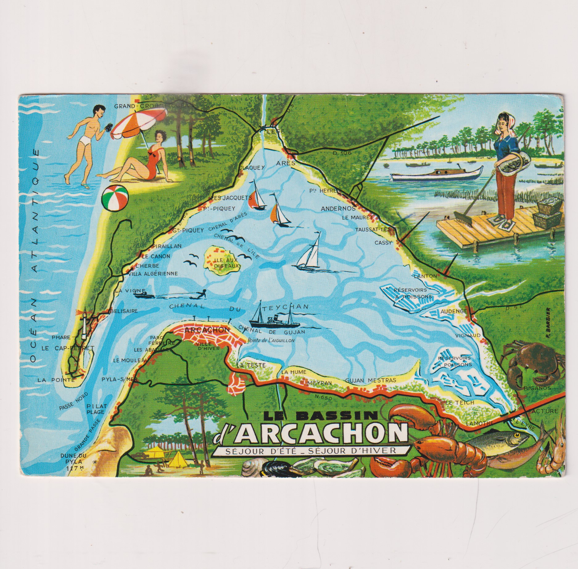 Widokówka z Francji.Arcachon – miejscowość i gmina we Francji, w regionie Nowa Akwitania, w departamencie Żyronda. Jest to popularne kąpielisko z łagodnym klimatem, na atlantyckim wybrzeżu południowo-zachodniej Francji, 55 kilometrów na południowy zachód od Bordeaux