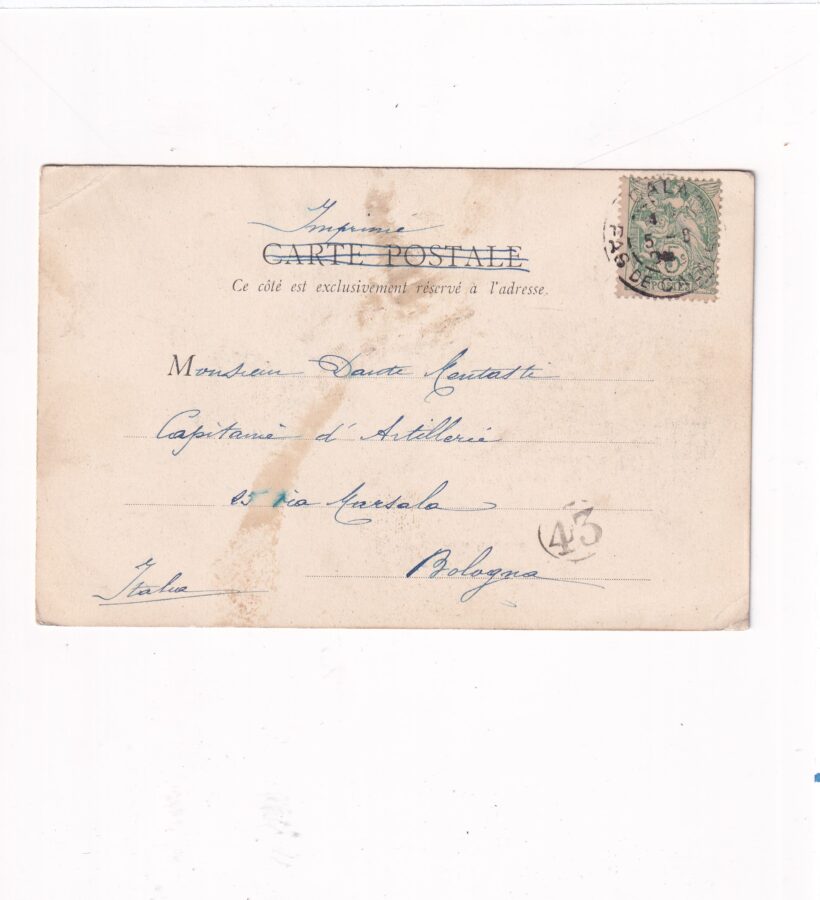Stan jak na skanie, z obiegu. Format:14*9cm. Długi adres, rok nadania 1908 ? Znaczek i stempel.