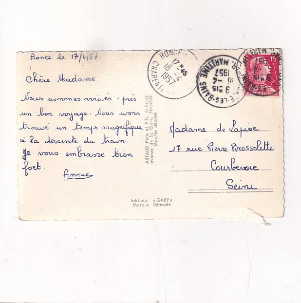 Stan jak na skanie , z obiegu. Format:14*9cm. Wysłano w 1957r