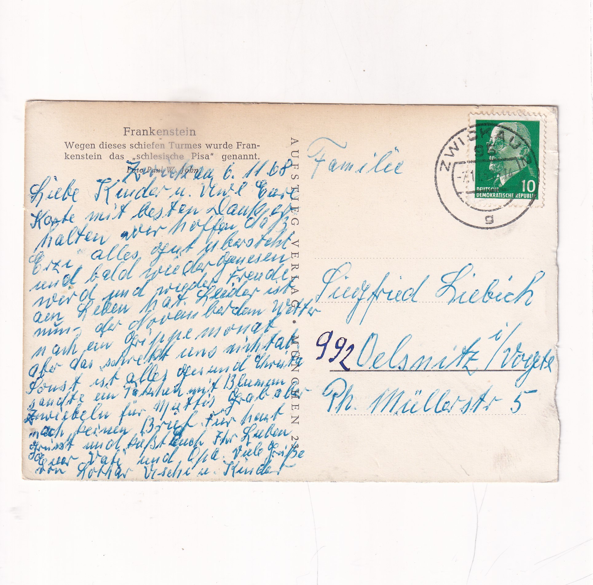 FRANKENSTEIN ZĄBKOWICE ŚLĄSKIE KRZYWA WIEŻA POCZTÓWKA A19893
