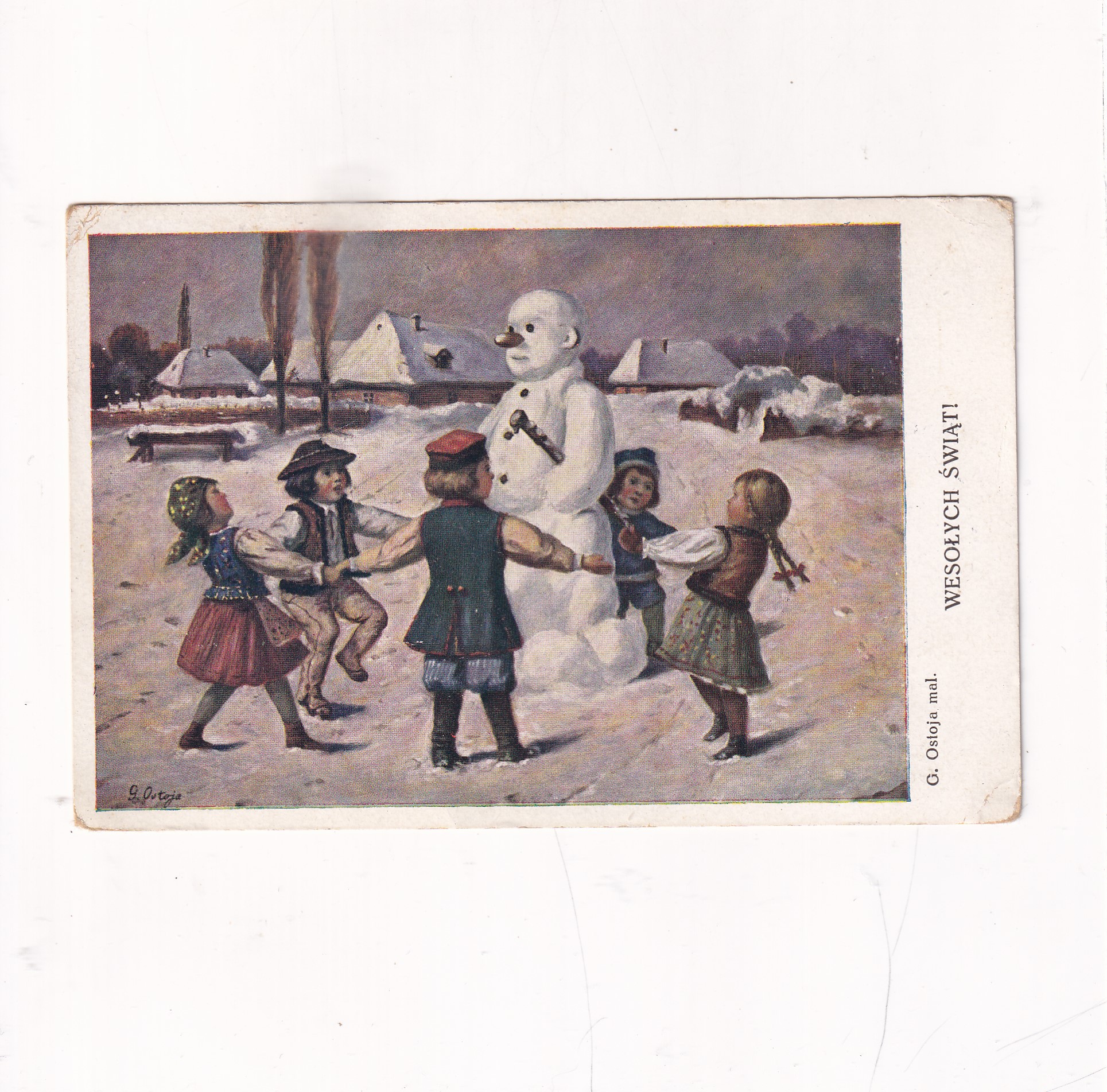 G.OSTOJA WESOŁYCH ŚWIĄT DZIECI BAŁWAN POCZTÓWKA A19823
