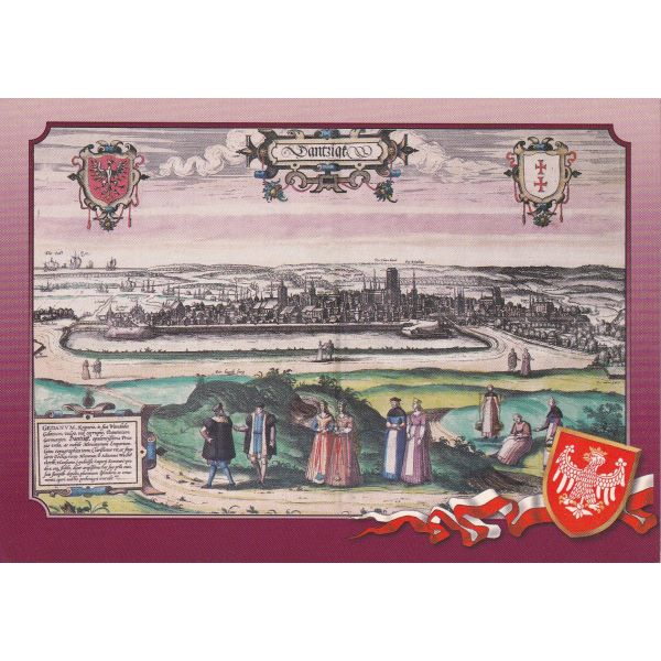 Gdańsk – koloryzowany drzeworyt, G. Braun, F. Hogenberg „Civitates orbis terrarum” Kolonia 1575-1599
