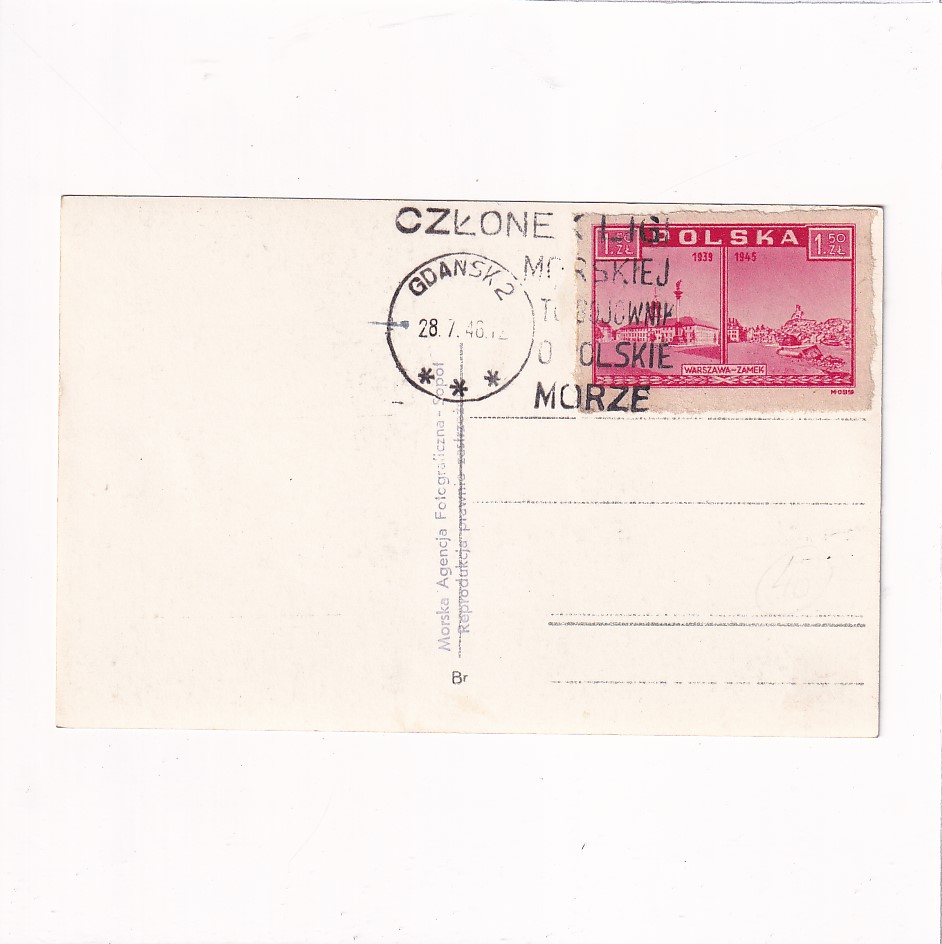 Stan jak na skanie, bez obiegu. Znaczek i stempel.ROk 1946. Format:14*9cm