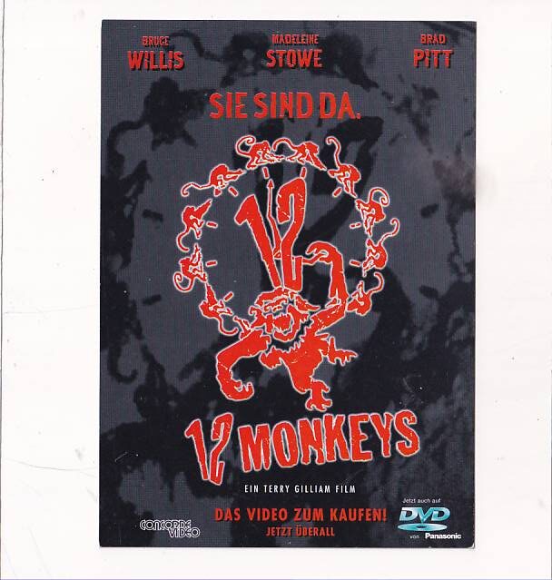 obraz to okładka filmu „12 małp” (Twelve Monkeys) z 1995 roku, w reżyserii Terry’ego Gilliama.