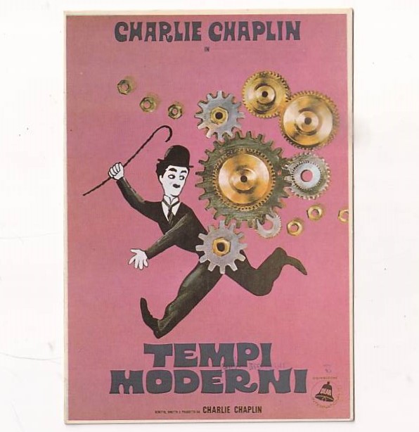 tytuł włoski: „Tempi Moderni” z 1936 roku, w którym główną rolę grał Charlie Chaplin.