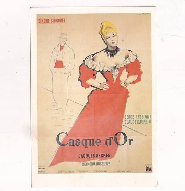 Ta grafika przedstawia plakat francuskiego filmu „Casque d’Or” (pol. „Złoty kask”) z 1952 roku w reżyserii Jacquesa Beckera. W rolach głównych występują Simone Signoret oraz Serge Reggiani.