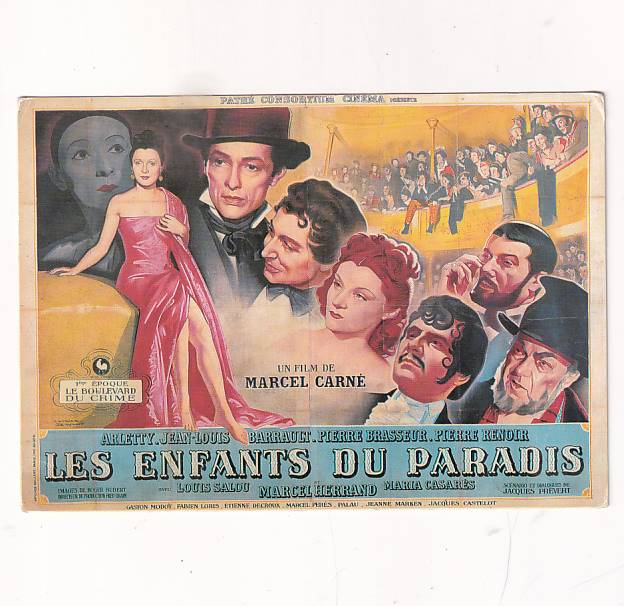 Plakat przedstawia głównych aktorów: Arletty, Jean-Louis Barrault, Pierre Brasseur, Pierre Renoir, Louis Salou, Marcel Herrand i María Casares