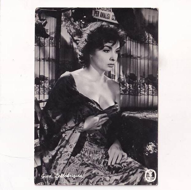 Widokówka z Włoch. Gina Lollobrigida, właśc. Luigina Lollobrigida – włoska aktorka filmowa i fotoreporterka. Była jedną z najbardziej znanych europejskich aktorek lat pięćdziesiątych i wczesnych sześćdziesiątych – międzynarodowym symbolem seksu. Gdy jej kariera filmowa zwolniła, rozpoczęła działalność jako fotoreporterka