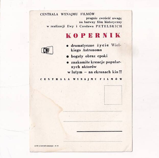 GWIAZDY KINA I TV „KOPERNIK” KOPICZYŃSKI ULOTKA/POCZTÓWKA A34402