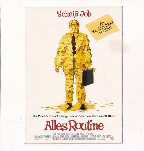 plakat kinowy niemieckiej wersji komedii „Życie biurowe” (oryg. Office Space), reklamujący jej premierę w Niemczech w 1999 roku
