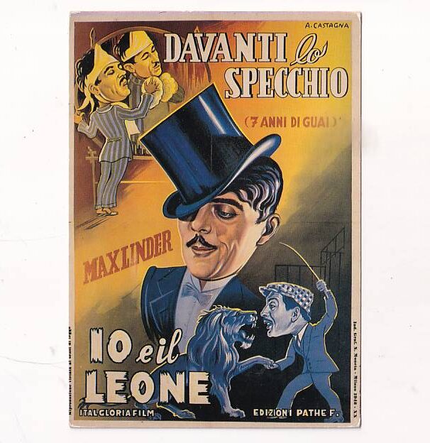 Prezentowany obraz to plakat do filmu niemego z Maxem Linderem, zatytułowany po włosku „Davanti lo specchio” (Przed lustrem).