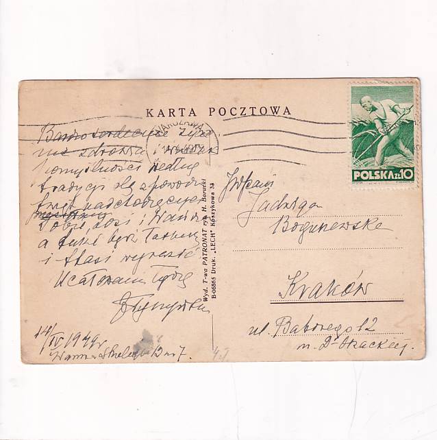 WYD:T-wa PATRONAT . Druk „LECH” koszykowa. Wysłano w 1949r.