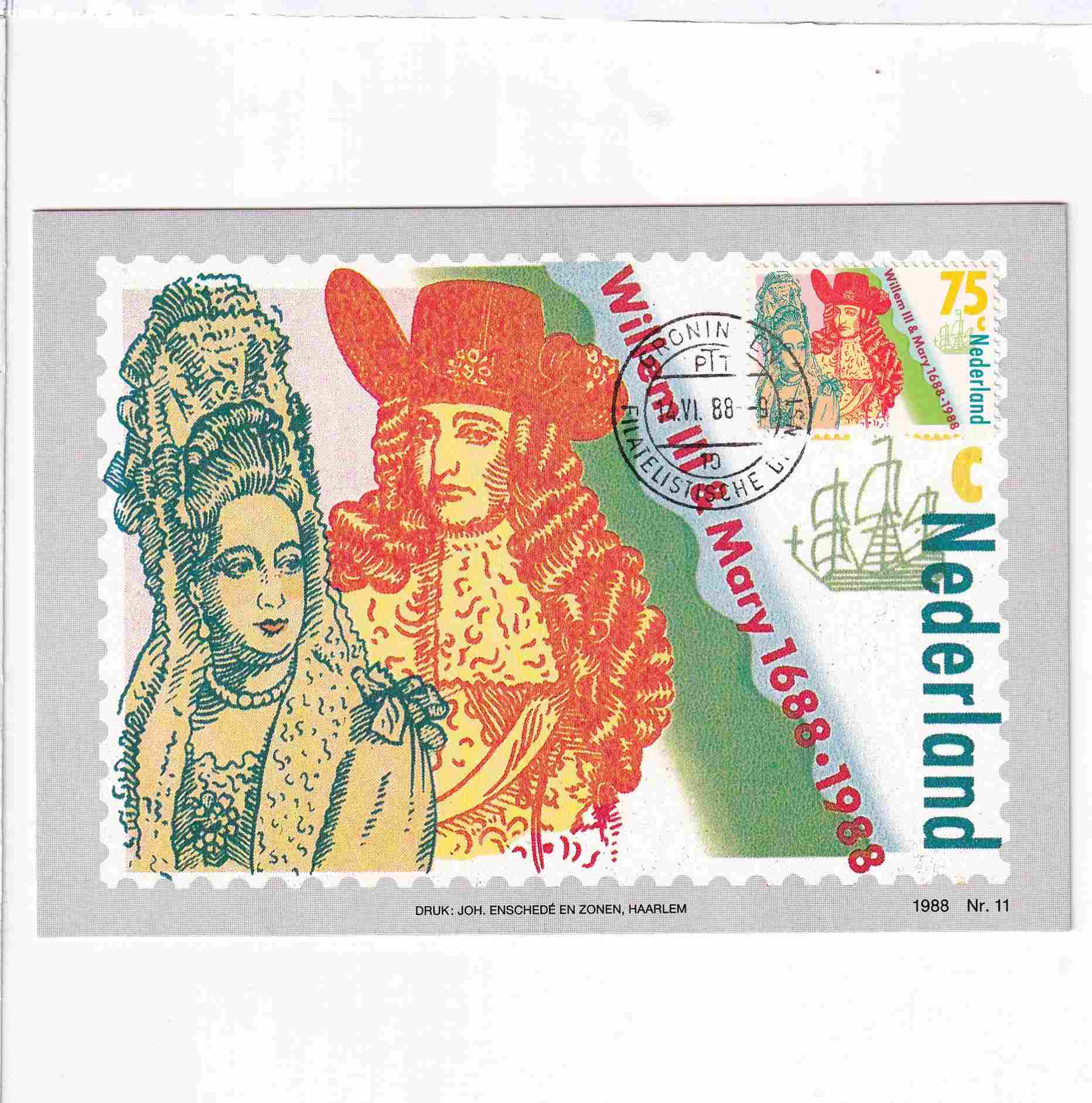 HOLANDIA WILLEM III & MARY 1688-1988 MAXIMUM POCZTÓWKA A95303
