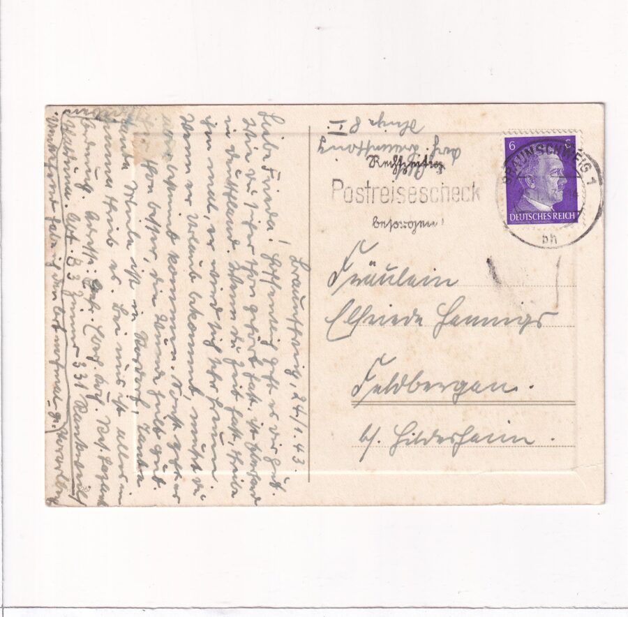 Stan jak na scanie, z obiegu. Znaczek i stempel.Treść języku niemieckim. Okres wojny.
