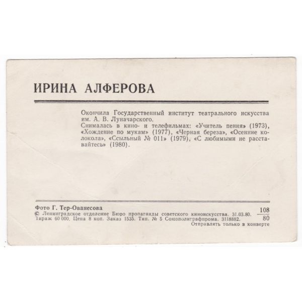 IRINA AŁFIOROWA AKTORKA POCZTÓWKA A44992