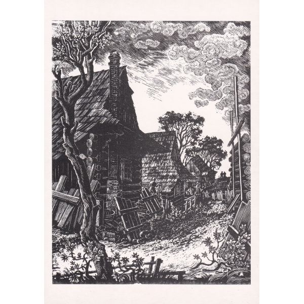 Chaty w Istebnej. P. Steller – drzeworyt (1958)