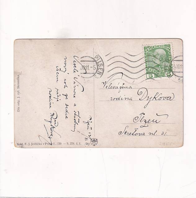 WYD:F.J.Jedlicka Praga. Wysłano w 1911r