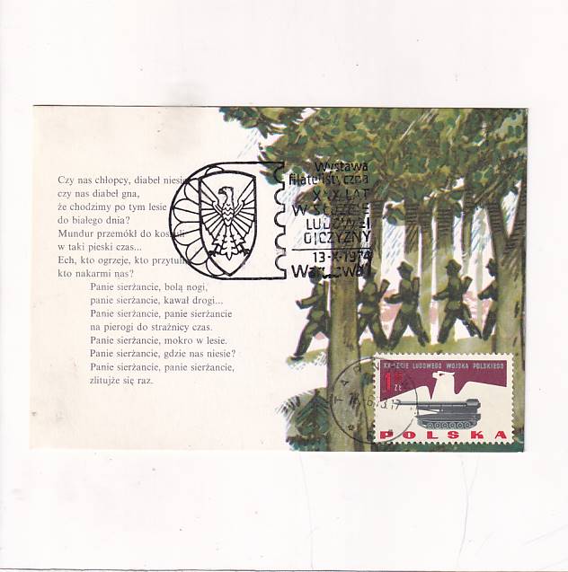 JAN KARCZEWSKI PIOSENKI ŻOŁNIERSKIE WYSTAWA FILATELISTYCZNA MAXIMUM POCZTÓWKA A28696