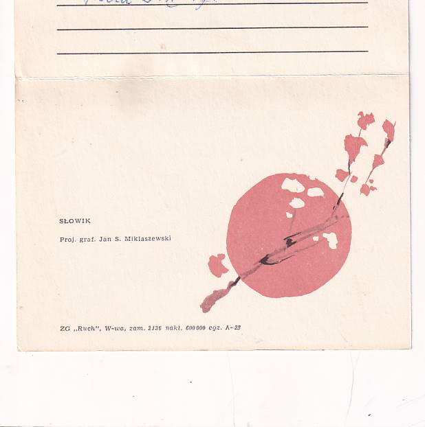ilość JAN S.MIKLASZEWSKI ŻYCZENIA TELEGRAM SŁOWIK POCZTÓWKA GRAF-1308