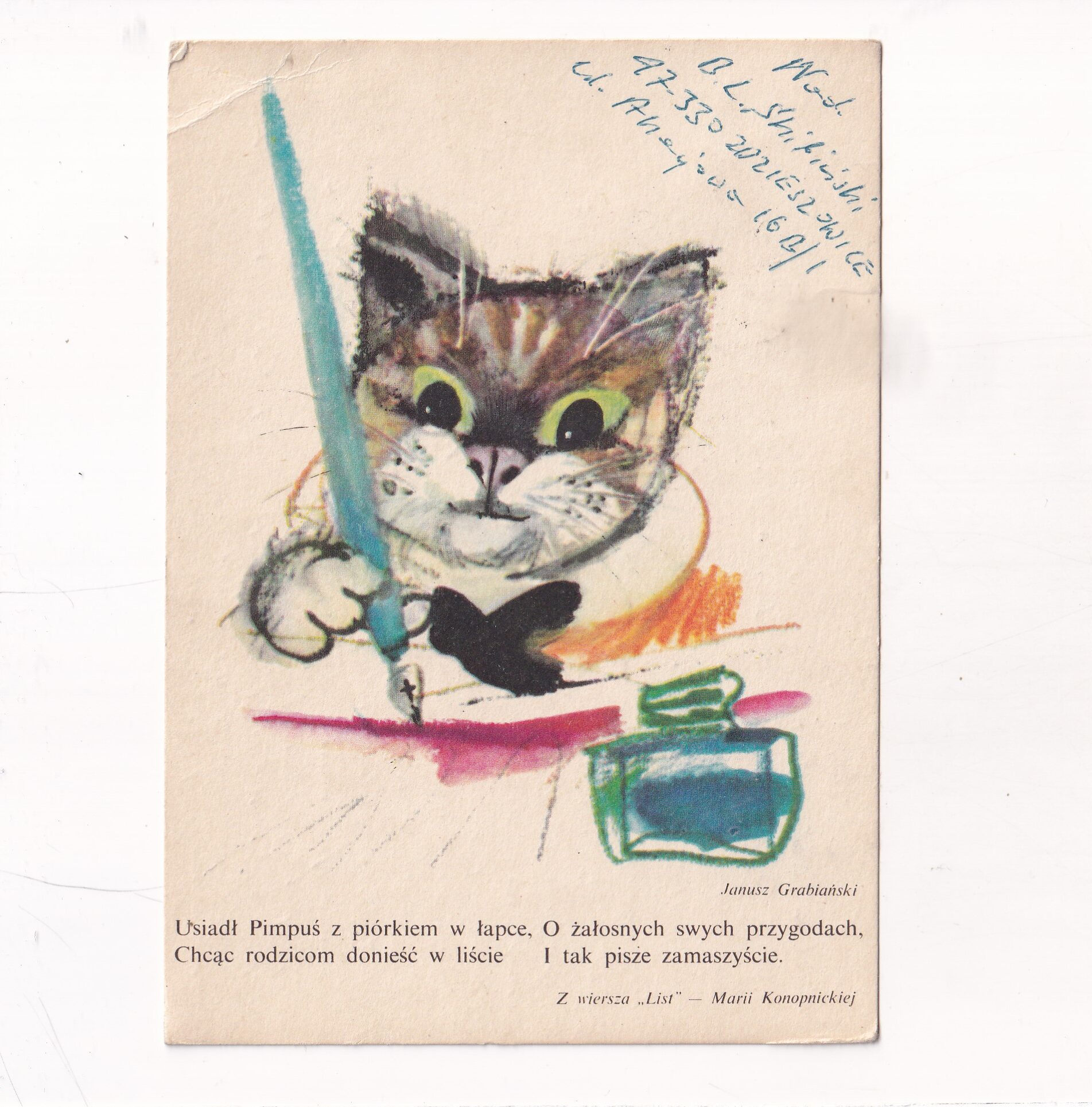 JANUSZ GRABIAŃSKI Z WIERSZA „LIST” MARIA KONOPNICKA KOT POCZTÓWKA A18668